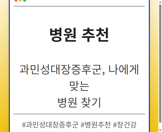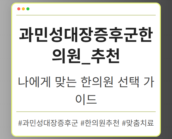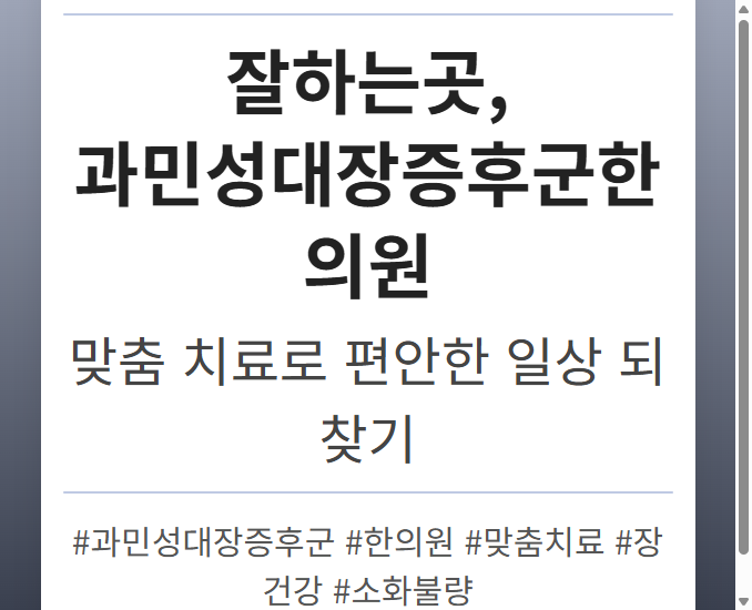 목차 IBS, 왜제대로치료해야 할까? IBS, 방치하면 생기는 문제점 IBS,제대로치료하는 방법 IBS, 병원 선택이 왜 중요할까? 실력있는 병원, 어떻게 찾아야 할까? IBS명의를 찾는 방법 IBS 극복,희망을 잃지 마세요! IBS 환자를 위한꿀팁대방출 IBS, 함께 이겨내요! 끊임없이 반복되는 복통, 팽만감, 그리고 예측 불가능한 배변 습관 변화. 과민성대장증후군(IBS)은 삶의 질을 심각하게 저하시키는 질환입니다. 하지만 IBS는 단순한 불편함을 넘어, 방치하면 […]