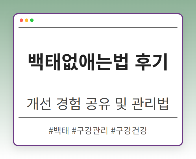 목차 백태, 왜 생기는 걸까? 백태의 주범, 구강 건조 흡연과 백태의 상관관계 자극적인 음식과 백태 백태 없애는법, 직접 경험한 후기 가장 중요한 것은 꾸준함 나에게 맞는구강 관리 제품찾기 정기적인 치과 방문의 중요성 백태 관리시 주의사항 혀 클리너사용 시 주의사항 구강 청결제사용 시 주의사항 치과 방문시 주의사항 본 게시글은 백태 제거 경험을 바탕으로 작성되었으며, 다양한 방법들을